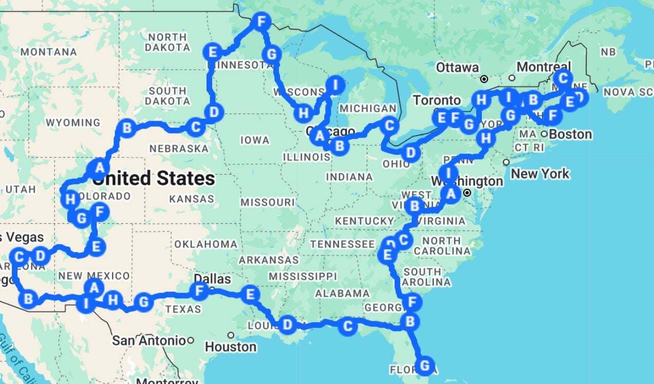 43 days, 7300 miles, 27 states. Oregon coast to South Carolina, Myrtle Beach, lots of family along the way. We made many wonderful stops and followed the bourbon trail in Kentucky and Tennessee.
