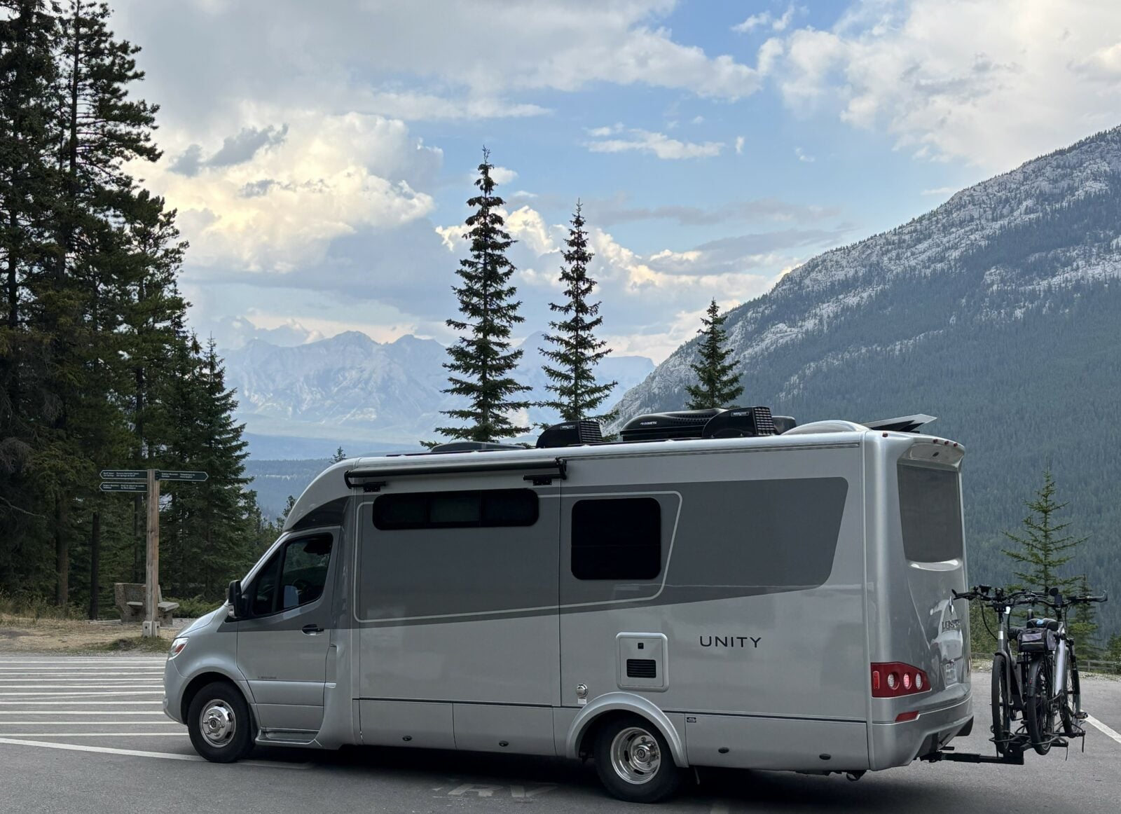 Two weeks after we received our Unity Murphy Bed Lounge, we were loaded and on our way from Toronto to Vancouver. The best part was the reliability and comfort of the Mercedes as well as the simplicity of hooking up at campsites. Our dog loved it, even though he didn’t have the privilege of using our indoor shower! The scenery was amazing, especially the mountain drives out of Banff, and we actually enjoyed the roller coaster ride both ways on the notorious Coquihalla Highway.