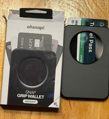 One such is sold by OhSnap. It can magnetically attach to a phone case or hide in your pocket, keeping your credit cards protected because it prevents skimming of your card’s info. Depending on thickness, it can hold up to eight cards and has a built-in stand. If you lose your phone with it attached, that’s a different story. The metal sleeve is about $80. Keep it in that Flip Belt above!