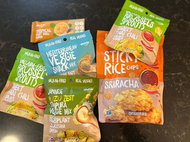 Here’s one snack we‘ll reach for when we get a case of on-the-road munchies in our Wonder: healthy items from Woodridge, available on Amazon. These are real vegetables, freeze-dried and ready to eat, including Mediterranean-style mixes, tempura-flavored eggplant, zucchini and onion, sticky rice chips, Thai mochi nuggets, and others. They’re vegan, gluten-free, and low-calorie. Want some fruit instead? Try the mango roll—all great.
