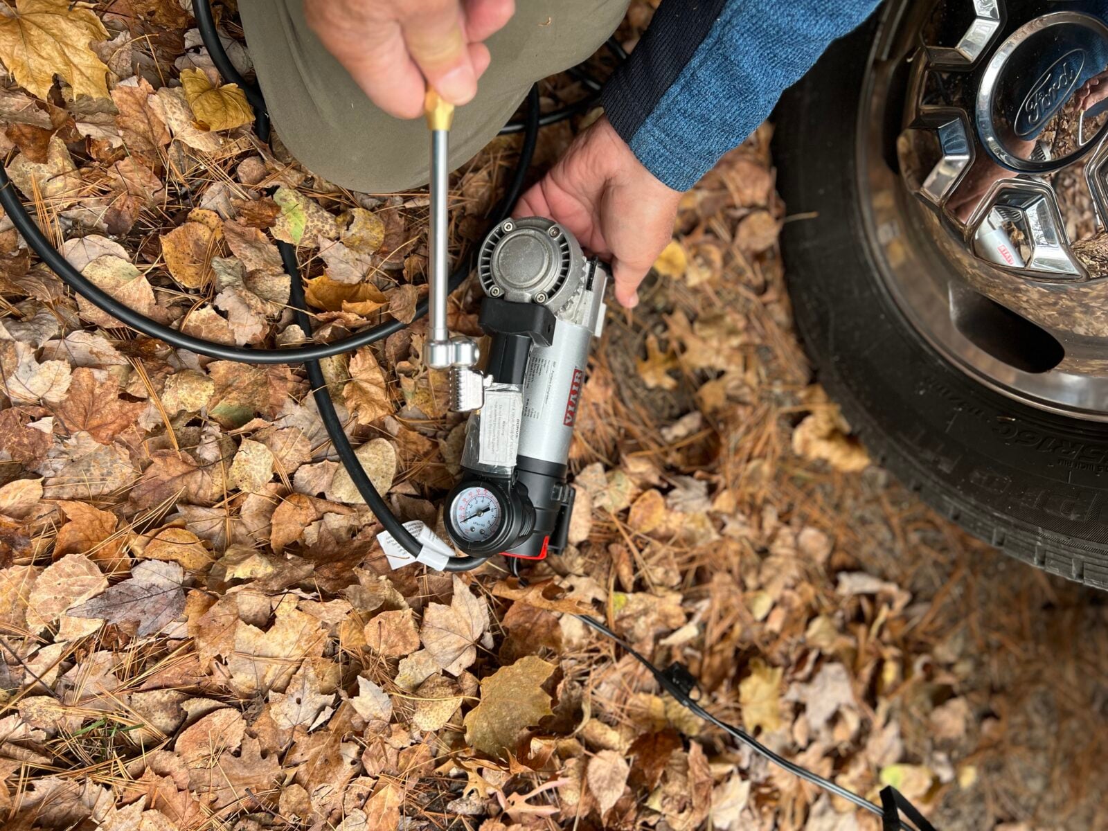 We’ve all struggled with how the heck to fill those rear dual wheels on our LTVs. I may have found the perfect solution, thanks to a recommendation from the folks who sell everyone’s favorite air compressor, Viair. Our 88P Viair is extremely compact and fills to 120 PSI, but ours didn’t come with an air chuck that could fill the flow-thru valve stem caps on our 2023 Wonder Murphy Bed Lounge. Okay, now what? I asked myself. How to fill those dual tires. The answer came from Viair.