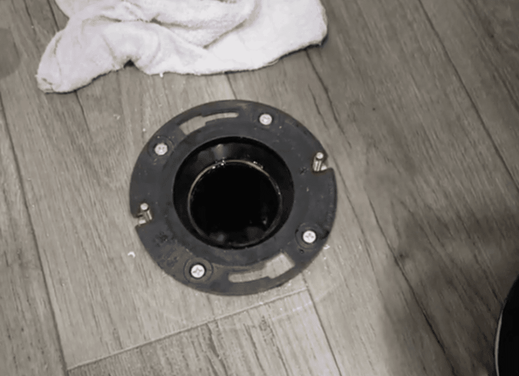 - Loosen the toilet base and lift the toilet to expose the floor flange.