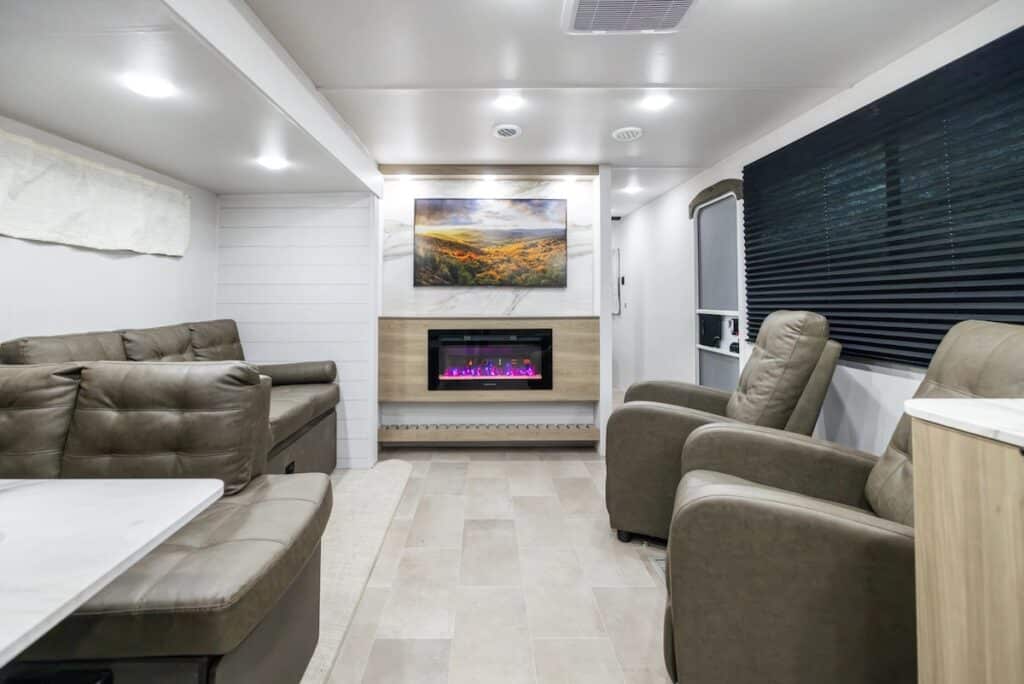 - Innovative “Luma Lounge”: A versatile 3-in-1 furniture system that quickly converts between a four-person dinette, a massive chaise lounge for movies, and a large sleeping area in under 60 seconds.