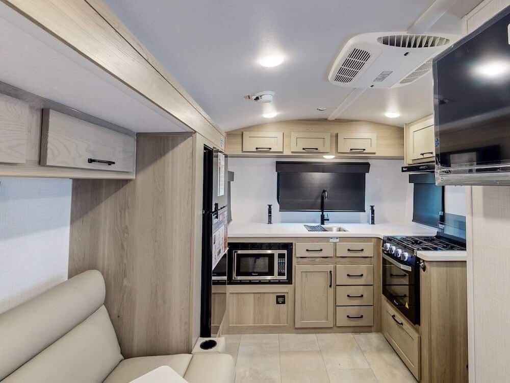 If you didn’t find what you are looking for on this list or want to check out other models, discover some additional travel trailer brands with front kitchen layouts: