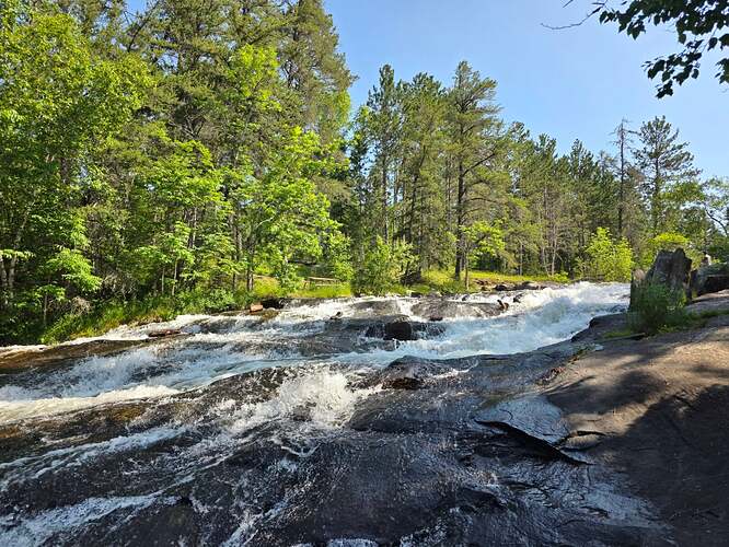 The next morning, when we left, we dumped our tanks and then spent some time looking at the waterfalls along the Rushing River. It seemed like much more water than we had seen in the past.