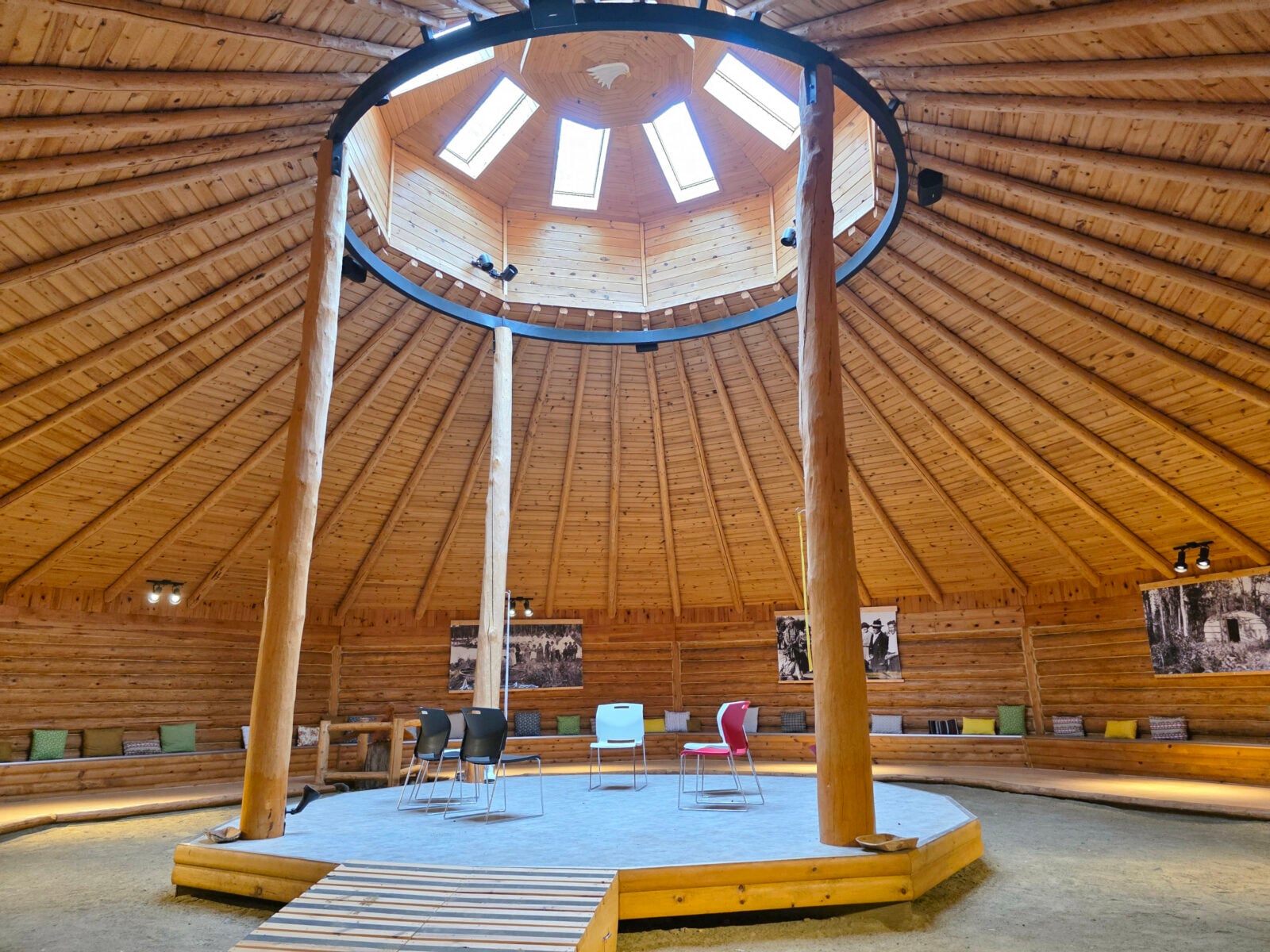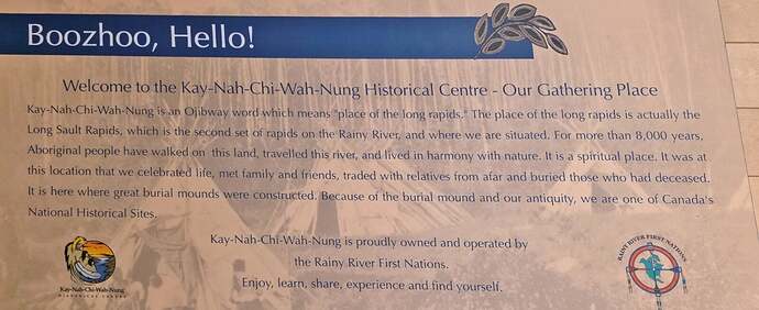 On our return trip, we stopped in the round house to look inside. They hold communal gatherings in the round house and have pictures of the guide’s ancestors. She was a descendant of the Chief who signed the original Treaty 3 in this area. Once back at the center, Sharon went to the restaurant to buy a takeaway portion of the wild rice soup and some Bannock so we could try that later. Again, this was another worthwhile detour from the normal route.