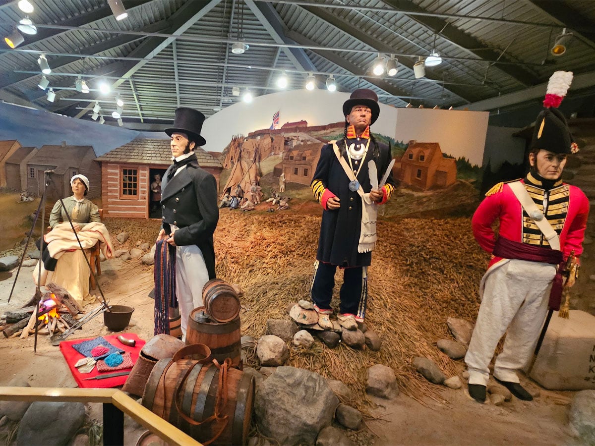 We decided to try to have at least one new experience each day on this trip west. The first one was to visit St. Joseph Island and the Fort St. Joseph National Historic Site. It’s roughly a 35-kilometer side trip one way to go to the Fort, and that had been why we hadn’t tried it in the past. However, our destination for that night was Pancake Bay Provincial Park, so we had the time to do this new stop. Fortunately, this summer, national parks and Historic Sites were free to visit, a bonus! This site had park staff in period costumes, a documentary about the history of the theatre, a museum, and the outside grounds where the foundations of many of the buildings were still there. Here are the key facts about this fort: