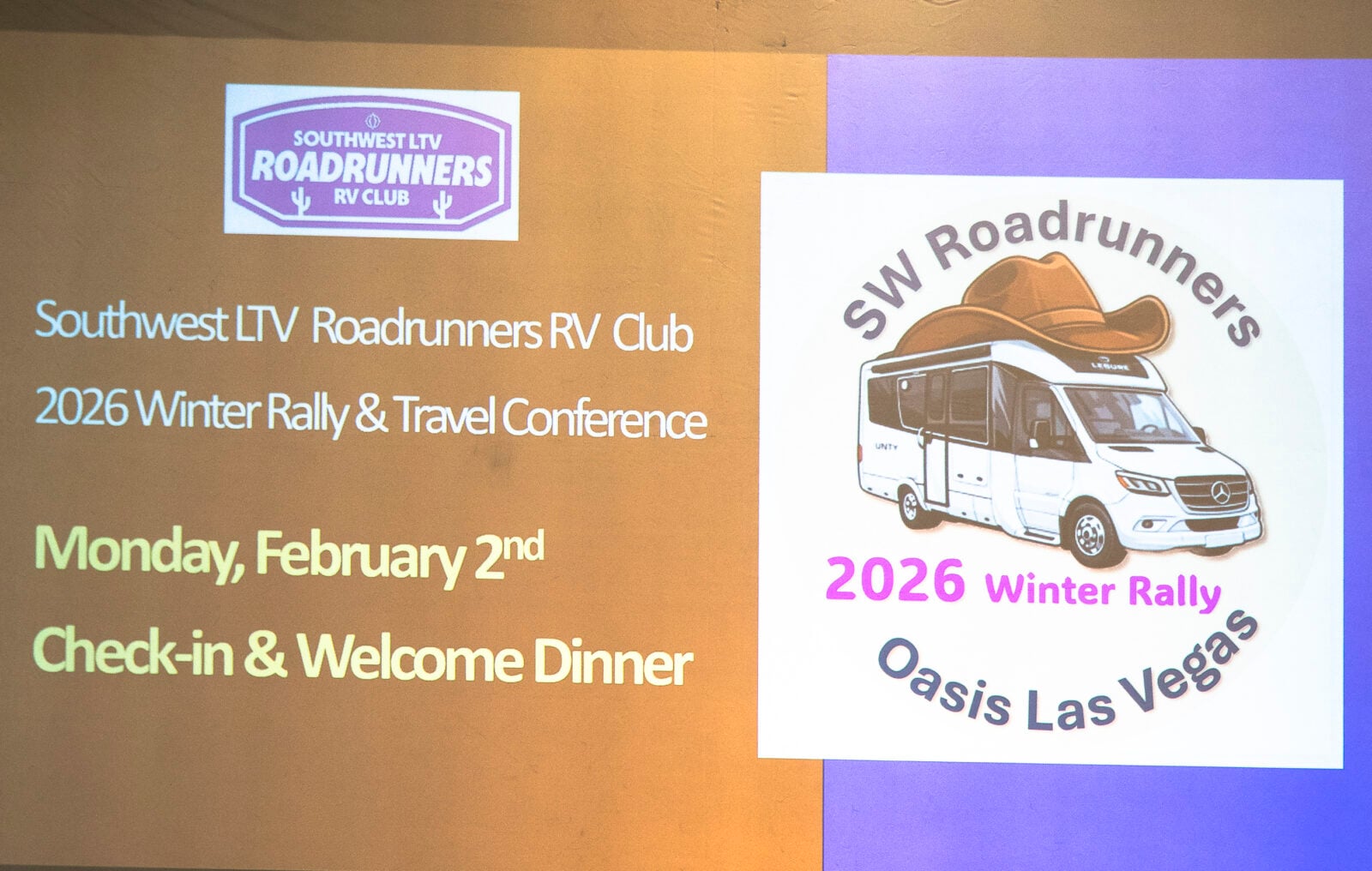 We had a great time at the end of January when the Southwest Roadrunners Travelers Club met at the Oasis RV Resort in Las Vegas, Nevada, for our annual winter rally and club business meeting. We had 104 coaches registered this year, a record, with many new and familiar faces. We love getting together every year for this opportunity to spend time together learning about and enjoying our LTVs!