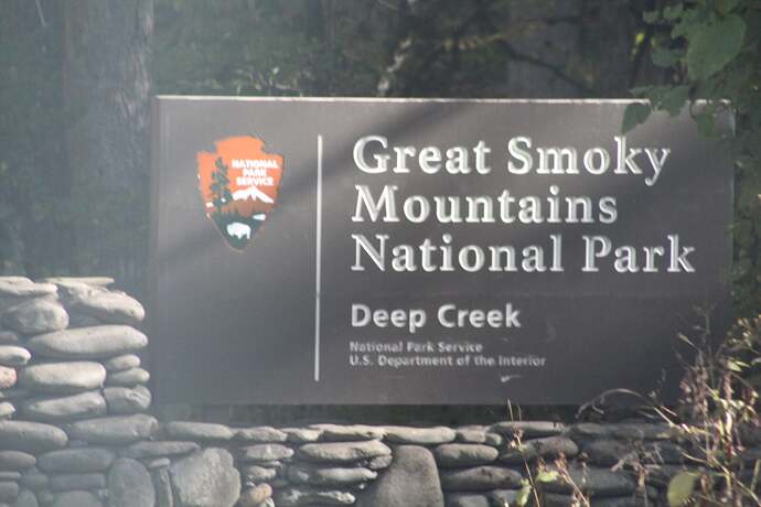 We didn’t get any reservations here in the Great Smoky Mountains National Park; we just showed up at the visitor center and enquired about space available for camping. The ranger said, “Yes,” and gave us a map with directions to the open campground. We actually camped in two campgrounds during our visit to the Smoky Mountains. On our first night, we camped at Deep Creek Campground. We had to leave the national park and then re-enter through the back of the park to get to Deep Creek. The second campground we stayed at for two nights was Smokemont Campground, situated in the heart of the park’s activities.
