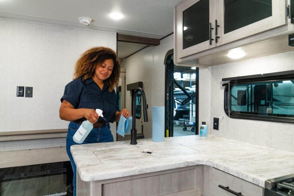 - Detail it. Give your RV a thorough cleaning—inside and out. While dealership professionals will also thoroughly clean your camper from top to bottom, any time you save them will reduce the wait until the listing is live and offers can be made.