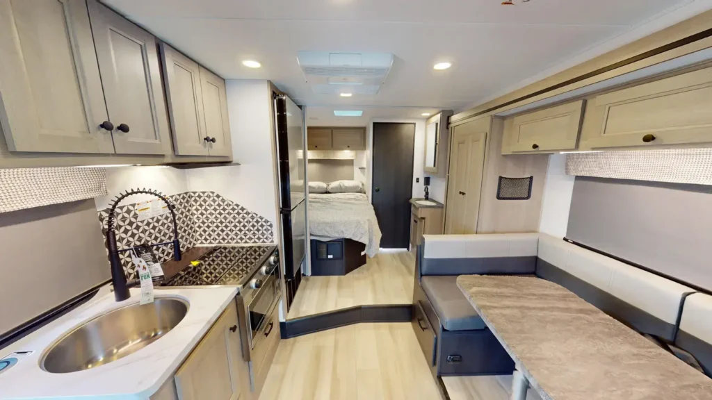 - Amenities: Compact Class C RVs still offer kitchens with cooktops, microwaves, and refrigerators, as well as bathrooms with showers.