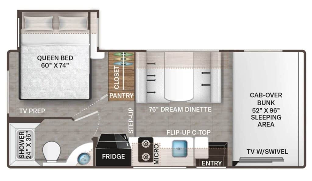 - Why choose a Class C under 25 feet: These compact motorhomes are easier to drive, park, and camp in, while still offering full amenities, safe seating, and no need to tow—making them ideal for first-time buyers, families, or RVers downsizing from larger rigs.