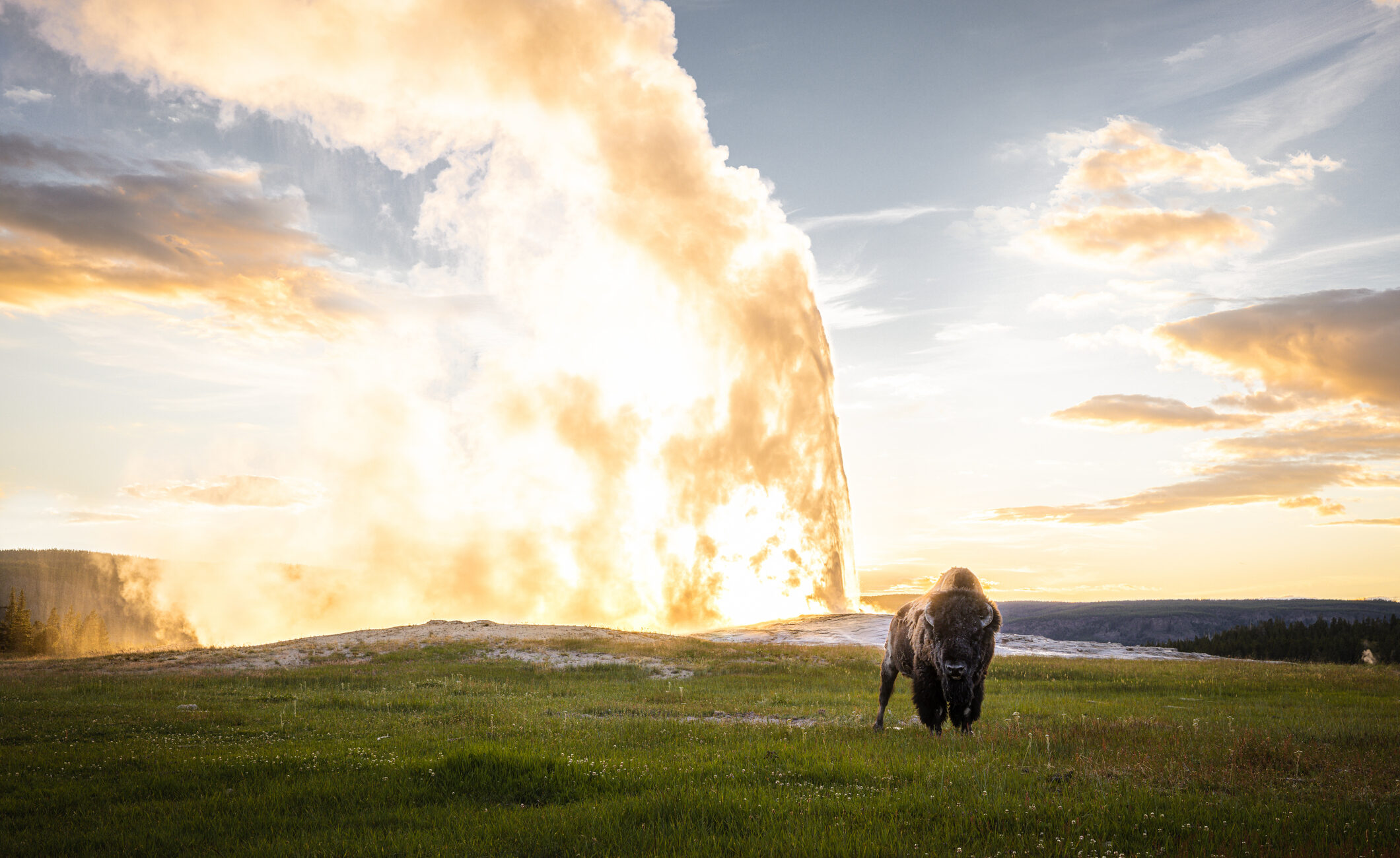 Yellowstone National Park has the largest herd in the U.S. and the 5,400 bison roam freely across the park’s 2,000,000+ acres. You’ll often encounter some of them crossing or following roads or meandering through geyser fields; you don’t have to be too intentional about tracking them down. If your time at the park is limited, you can always ask the rangers for recommendations for viewing a herd the day you are there.