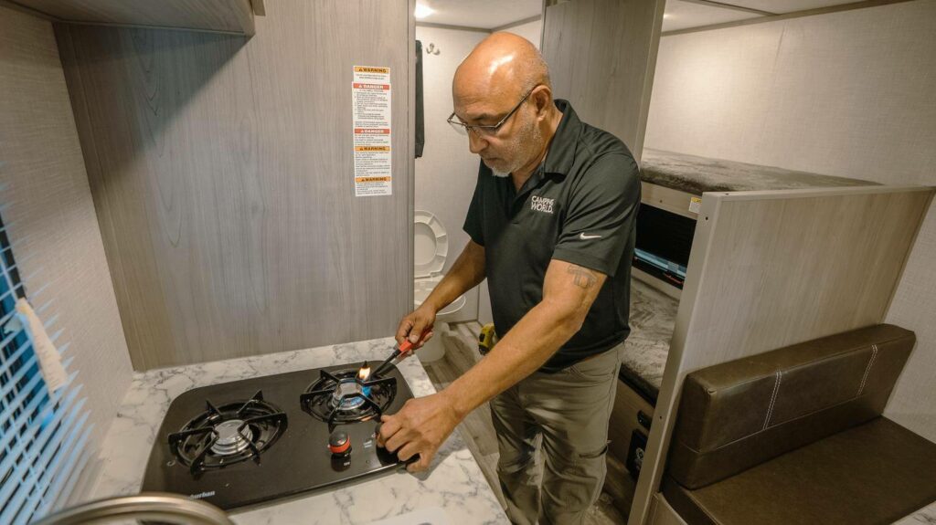 - Test appliances in a low-stress environment. Confirm that your stovetop, microwave, awnings, and other equipment still function as anticipated.