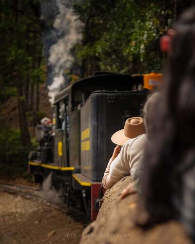 We got back eventually and were invited to go on a logging steam train ride, the Yosemite Mountain Sugar Pine Railroad. Clearly a tourist trap, so naturally I asked, “When do we leave?!” Susan passed. Ron, Tony, and I rode in a train car that looked like a hollowed-out log. It was relaxingly slow. Tony was even speaking to me again. I realized that taking pictures from the train wasn’t compelling storytelling, but a young teenager took selfies of herself for the entire ride, so at least I didn’t feel like I was the only one wasting my time.