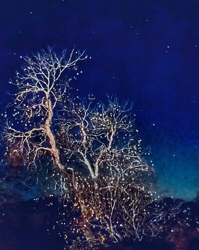 During one of our campfire gatherings, I did manage to snap this tall California buckeye tree with its dried “fruit” sparkling amongst the stars. I love the sparks of light from this old tree. A reminder to keep shining and that RV life, especially in our Unity, is grand, however, I/we choose to do it.