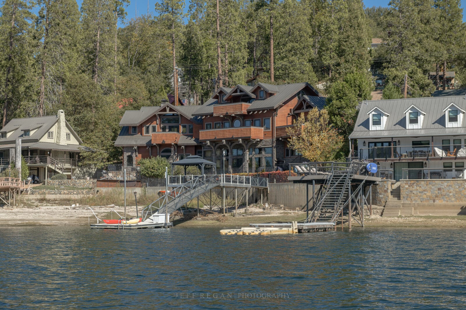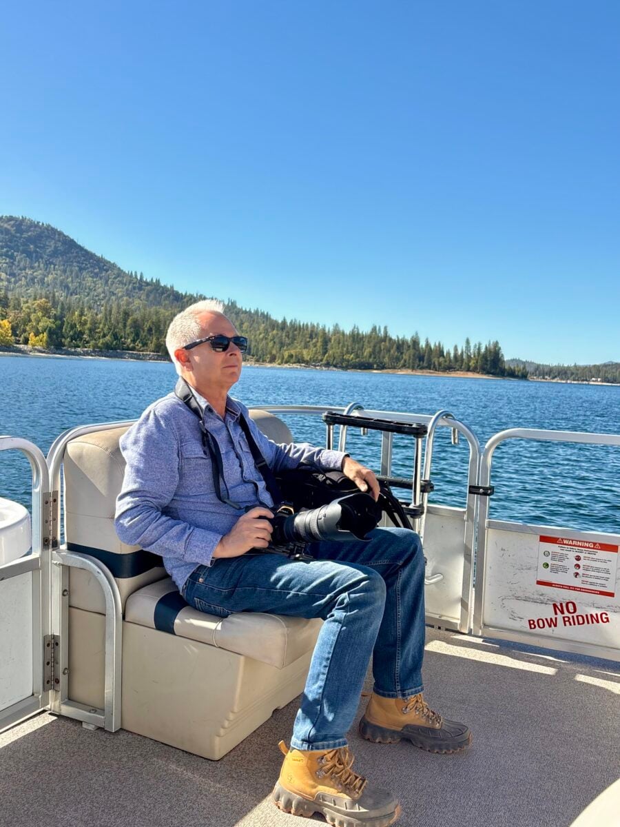 On Sunday, I opted out of driving myself into Yosemite. Instead, I would let Ron and Tony drive me in their Jeep. It was about 2:00 pm when they were finally ready to leave. Well, Ron really didn’t want to go into the park, so he came up with the idea of going to the much closer Bass Lake instead. When we got there, he said we should rent a boat. This was his best way to avoid any potential hiking. So Ron, Tony, and their two Pugs, along with I, got on the pontoon boat. I thought, at least this will be faster than that train. Except every time Captain Ron opened it up, it sputtered and misfired. So, it was another 5 mph ride, just like the train. After we did one lap of the lake perimeter, we still had more time left on the rental. Ron asked if we wanted to do a second lap. We immediately docked. It was the first boat ride for the Pugs, and they at least did not get seasick. The houses on the lake were huge.